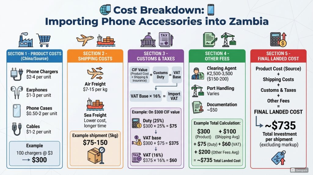 Many beginners think importing fails because products are expensive. In reality, most losses come from not understanding the total landed cost. Product price is only one part of the equation. This guide breaks down every cost involved when importing phone accessories into Zambia so beginners can price correctly and protect profits.